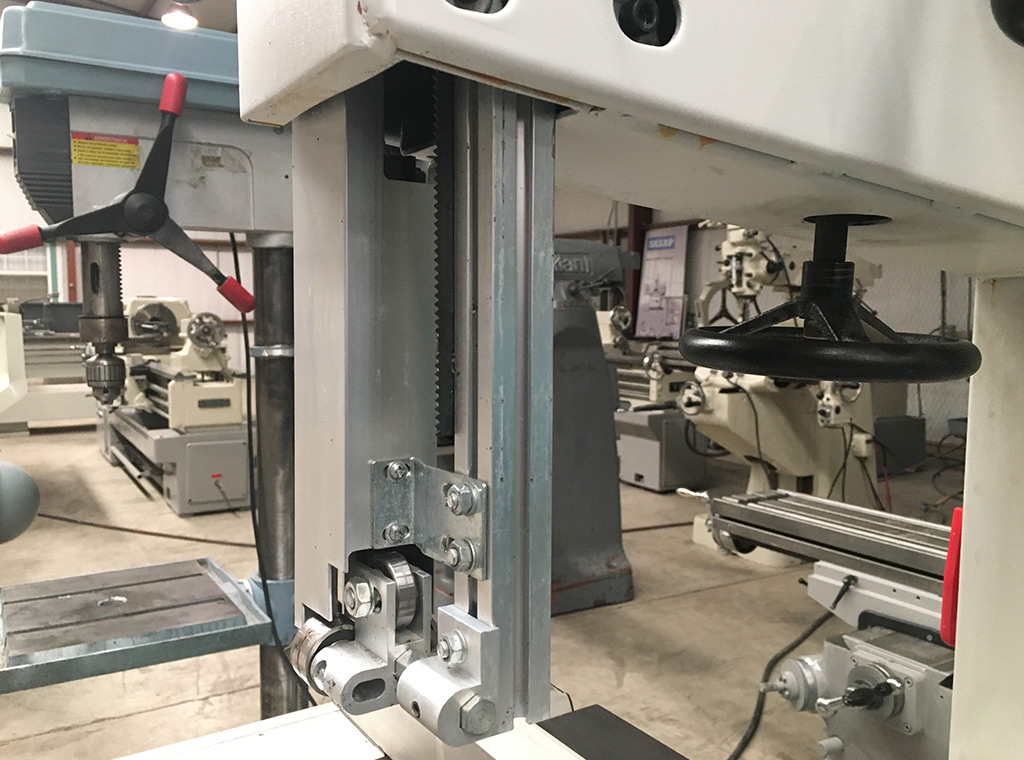 Tensión correcta de la sierra por pala excéntrica en la parte trasera de la máquina sin cambiar el ajuste estándar de tensión de la máquina.