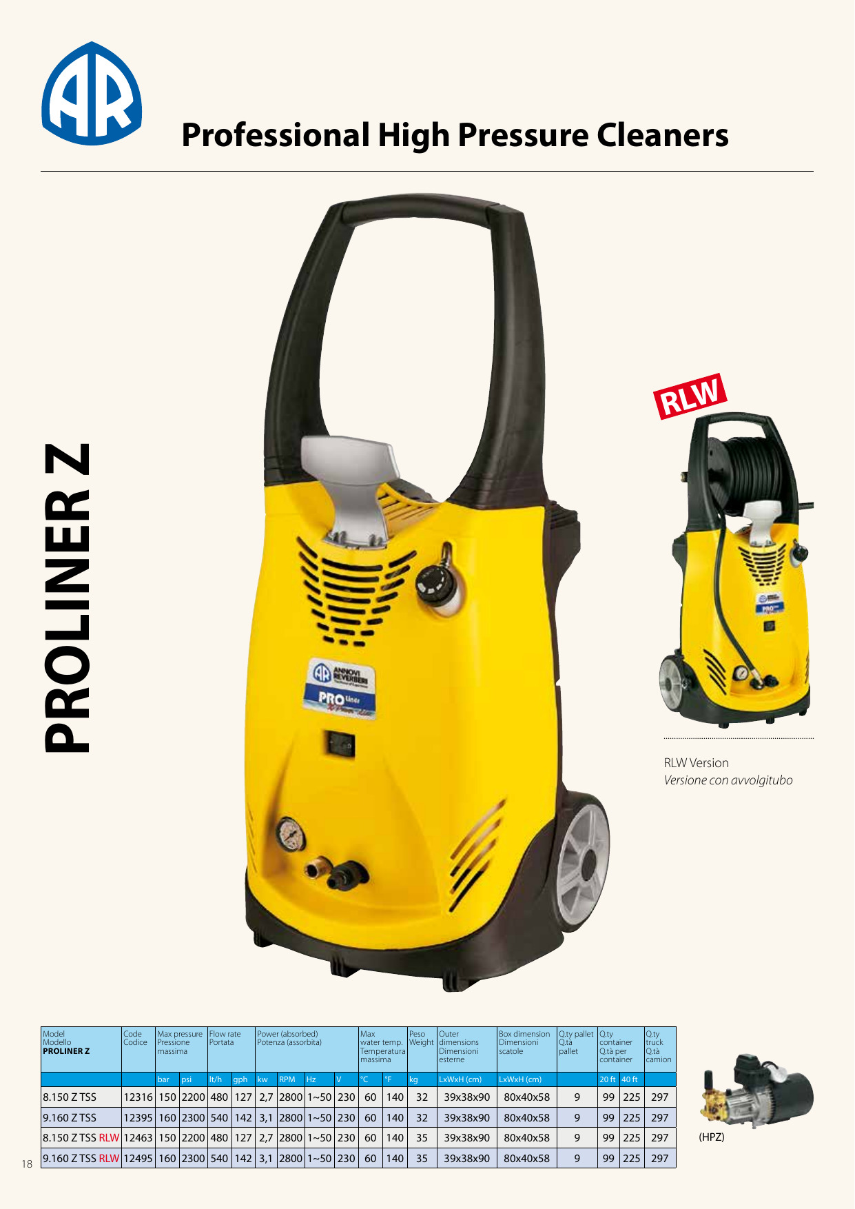 HIDROLAVADORA DE AGUA FRIA – > MARCA: ANNOVI REVERBERI -> MODELO: PROLINER Z 9.160 Z TSS ; realizamos entrega en las ciudades de Lima, Arequipa, Cusco , Moquegua , Tacna , Ica , Chiclayo , Trujillo, Cajamarca, Piura, Tumbes, iquitos, Huancayo , Ayacucho , Pucallpa, Huanuco , Cerro de Pasco ; llevamos mas de 10 años comercializando ANNOVI REVERBERI en Peru , somos especialistas importando hidrolavadora de agua fria, equipo de limpieza industrial , hidrolavadora, lavadora a presionHidrolavadora Agua Fría ANNOVI REVERBERI PROLINER Z 9.160 Z TSS
