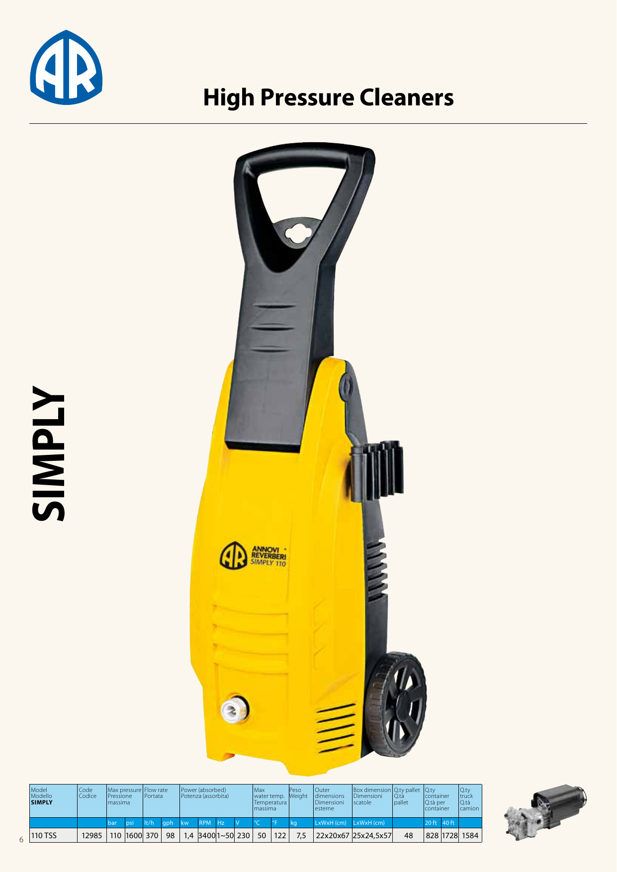 HIDROLAVADORA DE AGUA FRIA – > MARCA: ANNOVI REVERBERI -> MODELO: SIMPLY 110 TSS ; realizamos entrega en las ciudades de Lima, Arequipa, Cusco , Moquegua , Tacna , Ica , Chiclayo , Trujillo, Cajamarca, Piura, Tumbes, iquitos, Huancayo , Ayacucho , Pucallpa, Huanuco , Cerro de Pasco ; llevamos mas de 10 años comercializando ANNOVI REVERBERI en Peru , somos especialistas importando hidrolavadora de agua fria, equipo de limpieza industrial , hidrolavadora, lavadora a presionHidrolavadora Agua Fría ANNOVI REVERBERI SIMPLY 110 TSS