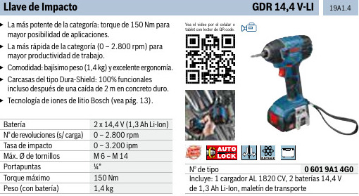 ATORNILLADOR DE IMPACTO – > MARCA: BOSCH -> MODELO: GDR 14.4V-LI ; realizamos entrega en las ciudades de Lima, Arequipa, Cusco , Moquegua , Tacna , Ica , Chiclayo , Trujillo, Cajamarca, Piura, Tumbes, iquitos, Huancayo , Ayacucho , Pucallpa, Huanuco , Cerro de Pasco ; llevamos mas de 10 años comercializando BOSCH en Peru , somos especialistas importando atornillador de impacto, herramientas electricas , destornillador , atornilladorAtornillador d/impacto Inalámbrico BOSCH GDR 14.4V-LI