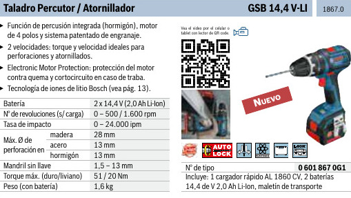 TALADRO PERCUTOR – > MARCA: BOSCH -> MODELO: GSB 14,4V-LI ; realizamos entrega en las ciudades de Lima, Arequipa, Cusco , Moquegua , Tacna , Ica , Chiclayo , Trujillo, Cajamarca, Piura, Tumbes, iquitos, Huancayo , Ayacucho , Pucallpa, Huanuco , Cerro de Pasco ; llevamos mas de 10 años comercializando BOSCH en Peru , somos especialistas importando taladro percutor, herramientas electricas , atornillador, taladro/atornillador Atornillador BOSCH GSB 14,4V-LI