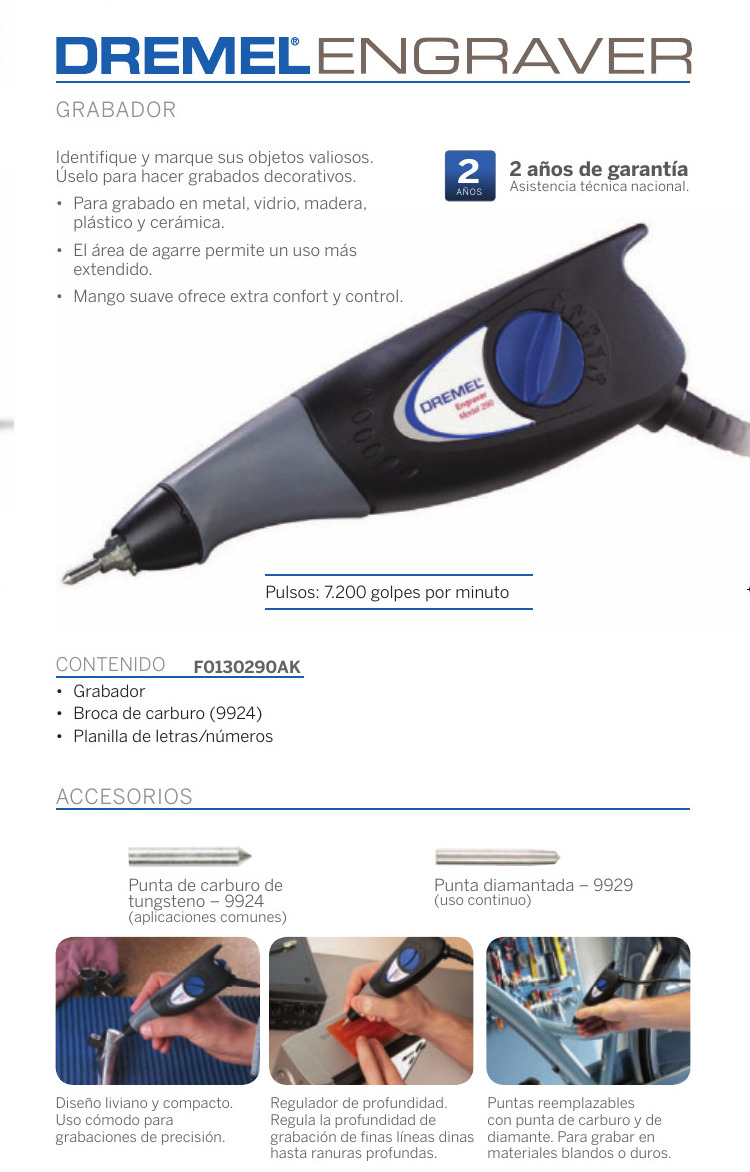 · El grabador Dremel ofrecela precisión, comodidad y ergonomía que necesita para unexcelente resultado.