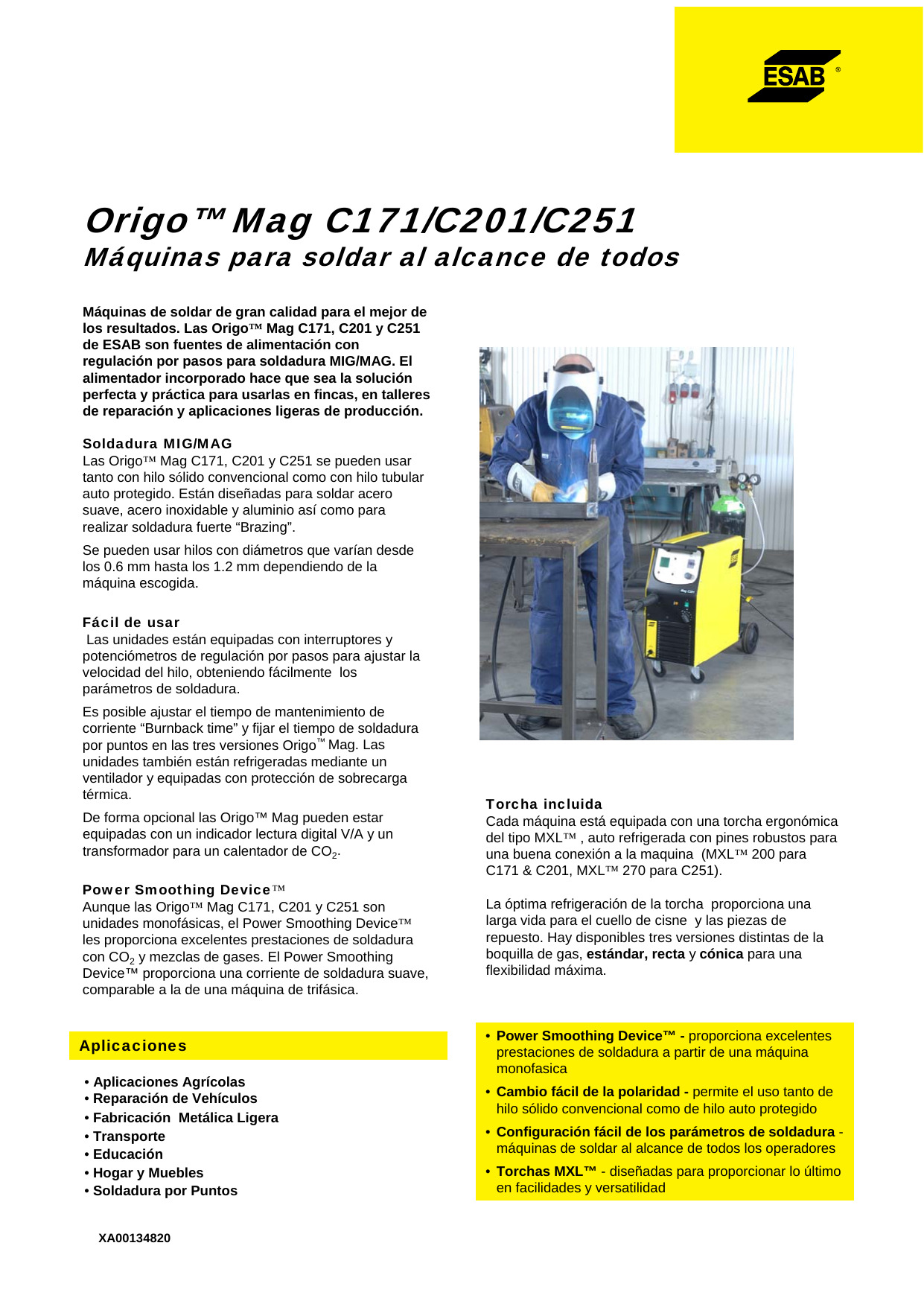 Diseñada para soldar acero suave, acero inoxidable y aluminio, así como para realizar soldadura fuerte “Brazing”.