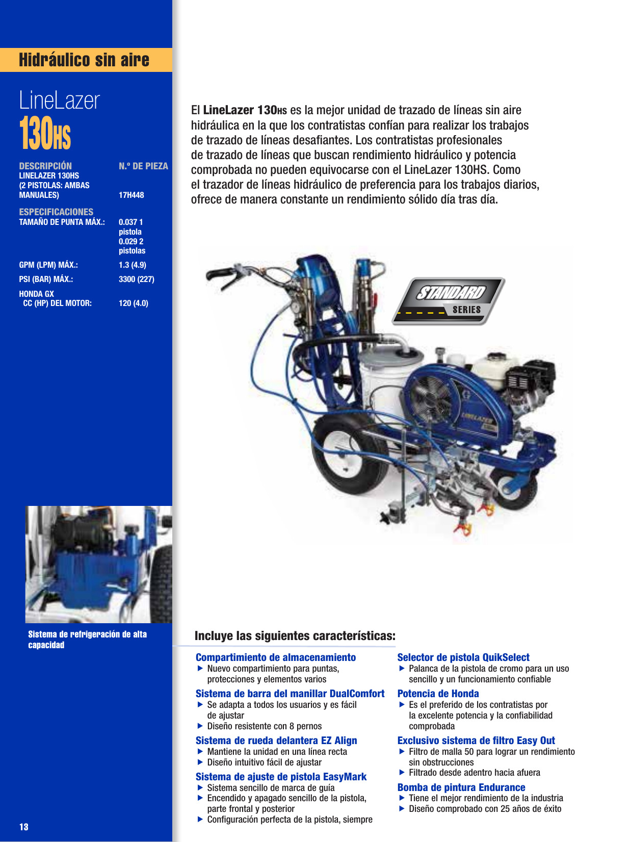 El LineLazer 130Hs es la unidad para trazado de líneas sin aire hidráulica de última generación que cuentan con la confianza de los contratistas para sus trabajos de trazado más desafiantes. Los contratistas de trazado de líneas profesionales que desean un rendimiento hidráulico