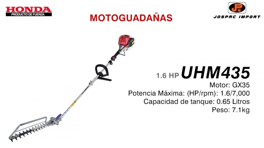 MOTOGUADAÑA – > MARCA: HONDA -> MODELO: UHM435 ; realizamos entrega en las ciudades de Lima, Arequipa, Cusco , Moquegua , Tacna , Ica , Chiclayo , Trujillo, Cajamarca, Piura, Tumbes, iquitos, Huancayo , Ayacucho , Pucallpa, Huanuco , Cerro de Pasco ; llevamos mas de 10 años comercializando HONDA en Peru , somos especialistas importando motoguadaña, equipo de jardineria , desbrozadora, desmalezadoraMotoguadaña HONDA UHM435