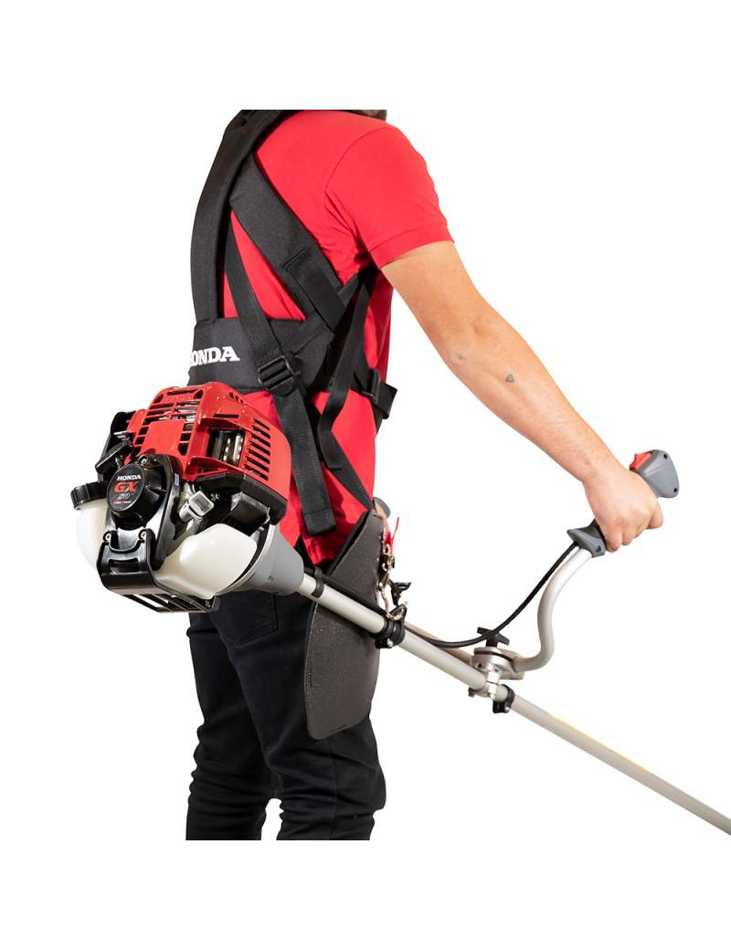 Orilladora ~ Desmalezadora HONDA UMK 450, Motor de 4 tiempos, NO usa mezcla tipo comercial/profesional, bastidor; construido en un tubo principal cuyo diámetro es de 28mm., espesor de 2 mm., manillas de operación: tipo U (permite controlar el desbroce con mayor vigor) Equipada con motor HONDA modelo GX50 (M4), 50cc., bencinero de cuatro tiempos, válvulas en la culata OHV, mono cilíndrico, refrigerado por aire forzado, lubricado por aceite, encendido electrónico, descompresor automático (minimiza la fuerza a utilizar en la partida), arranque manual por piola retráctil.