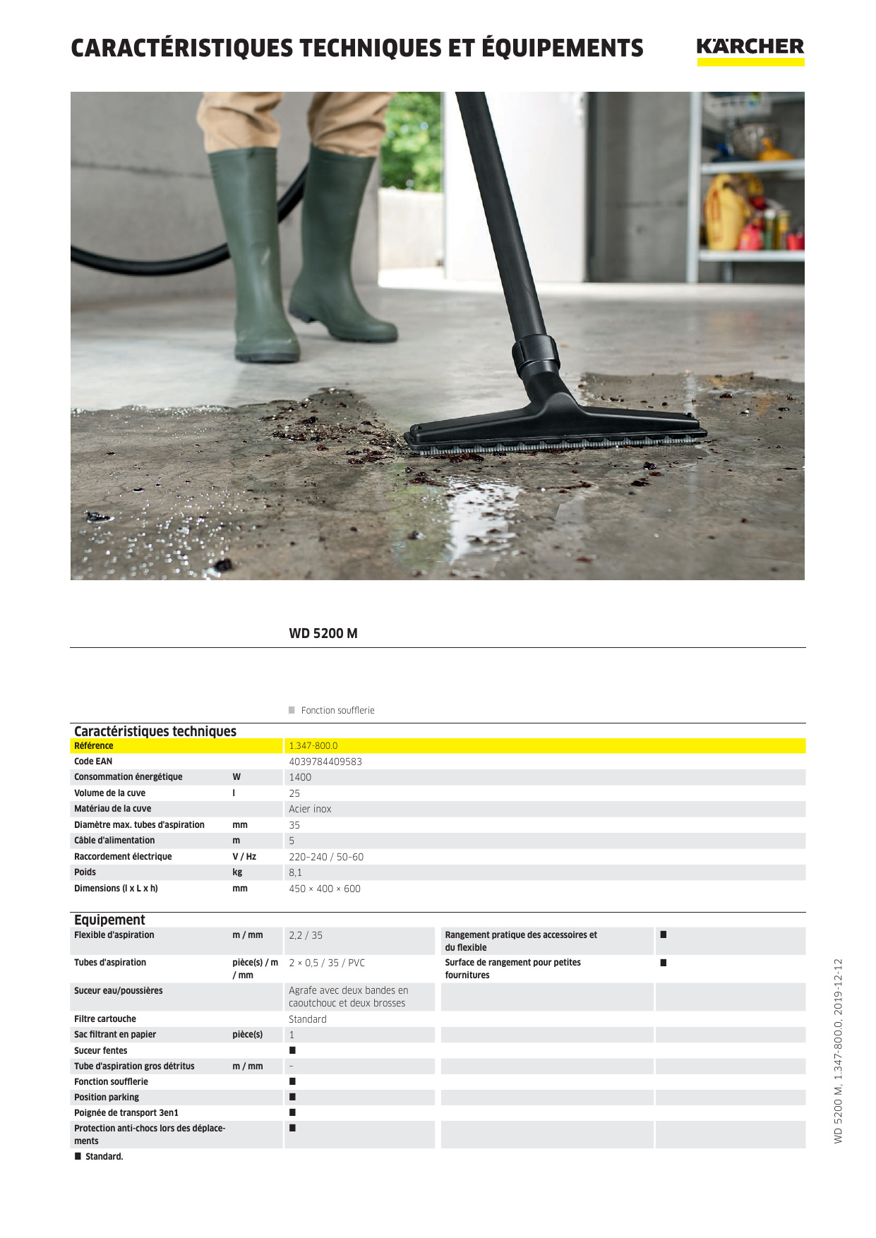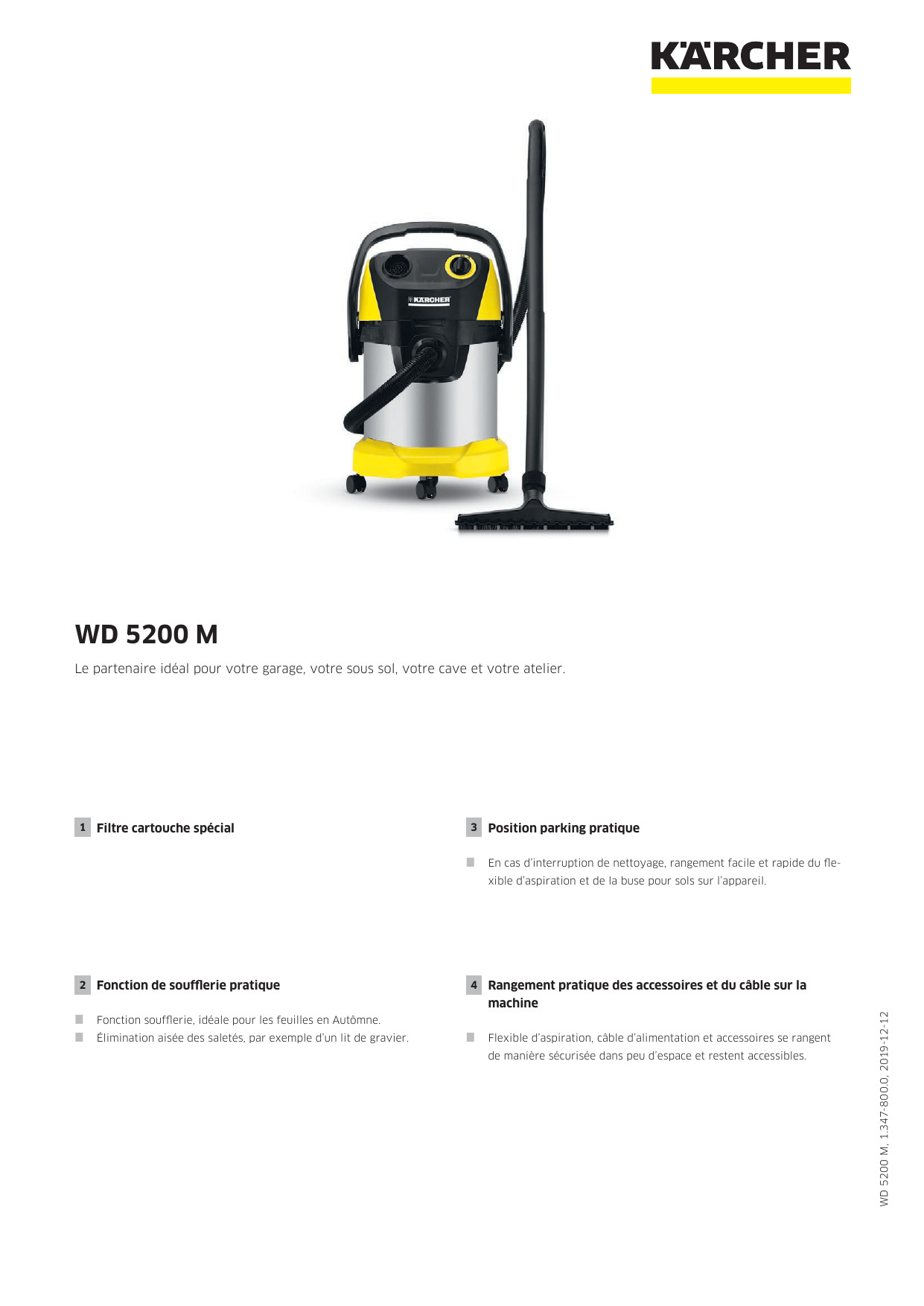 Aspirador en seco y húmedo karcher WD 5.200 M para aspirar polvos y líquidos. Está constituido por un recipiente de acero inoxidable y un sistema de aspiración de líquido sin tener la necesidad de quitar el filtro ayudando a realizar la limpieza de su hogar o de su vehículo de una forma más cómoda.