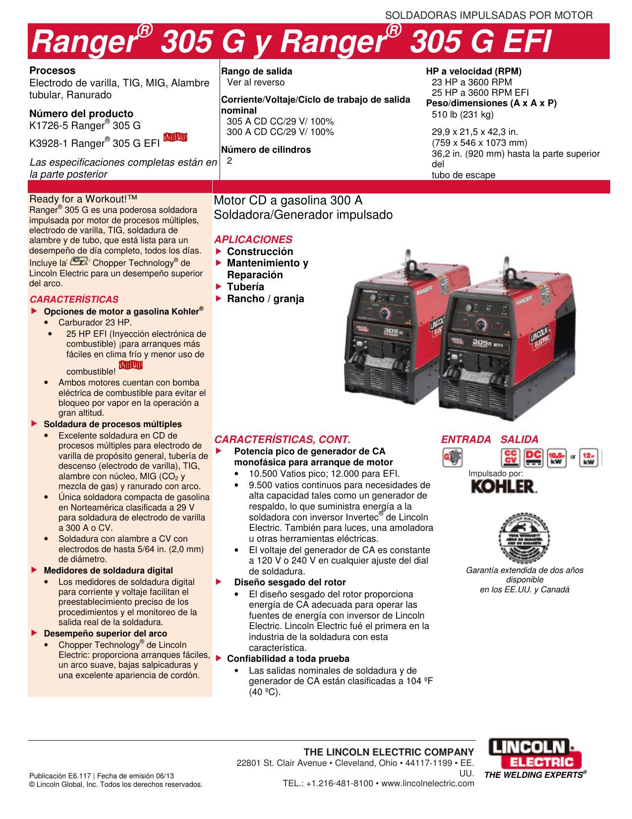 Somos Importadores Directos de LINCOLN Ranger 305G en Peru