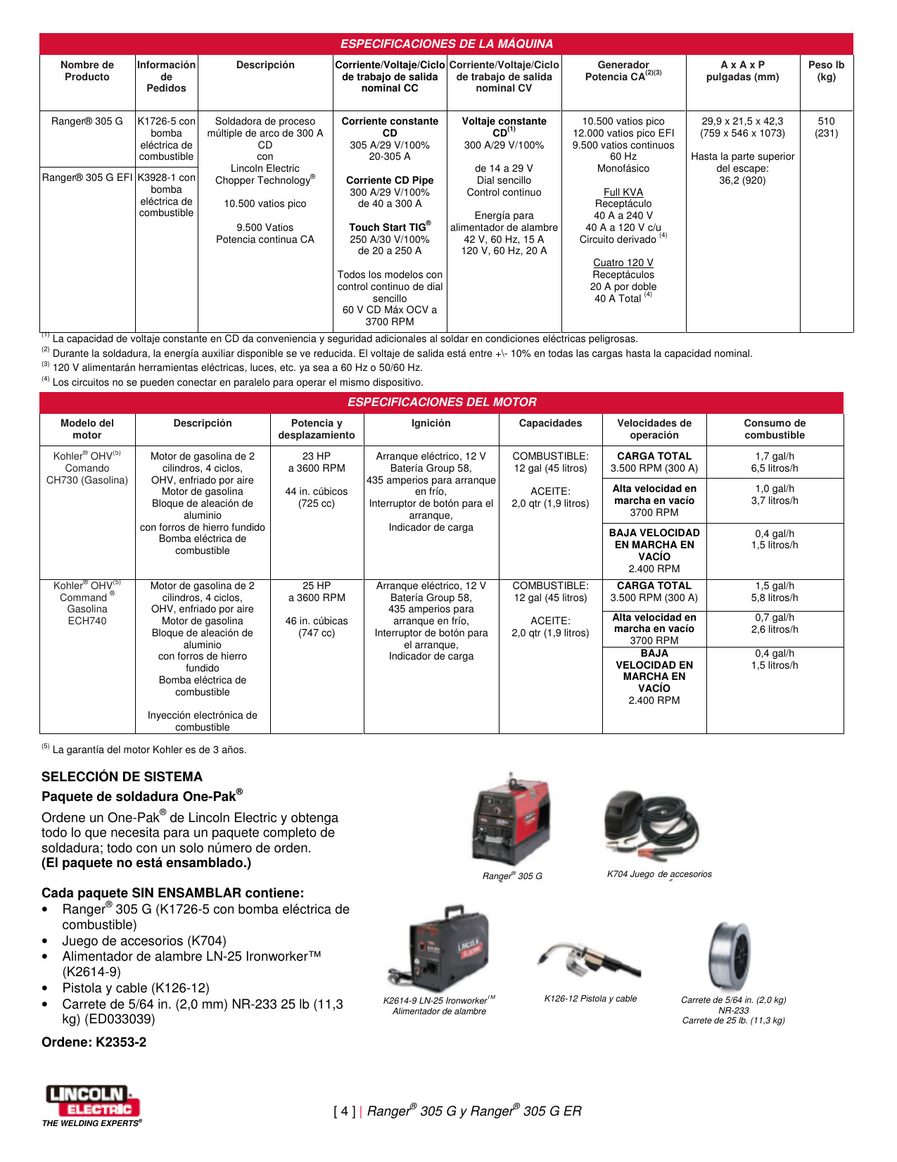 MOTOSOLDADORA MARCA: LINCOLN MODELO: RANGER 305G