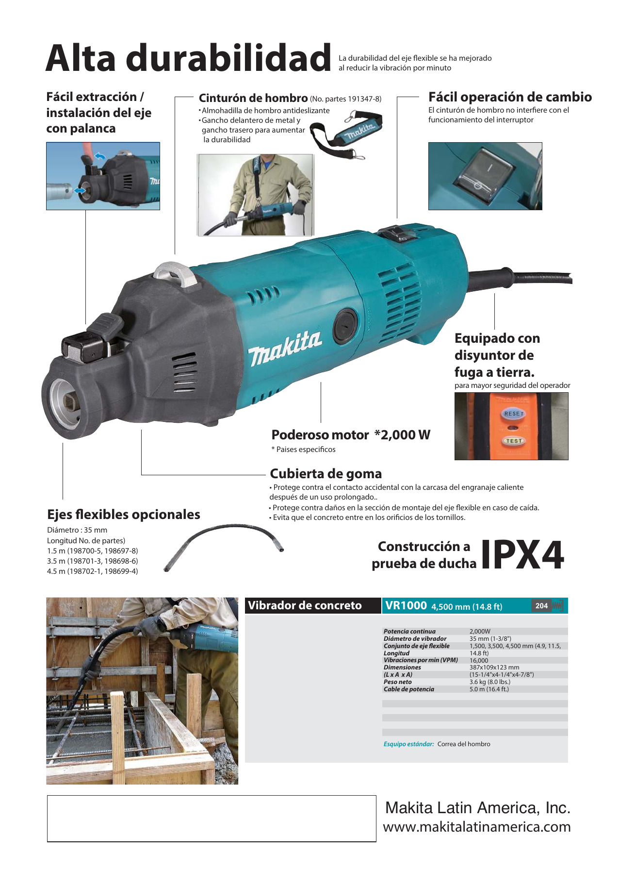 MAKITA Vibradora de Concreto VR1000 2000W 1F + manguera 1-3/8pulg x 4.5mtr