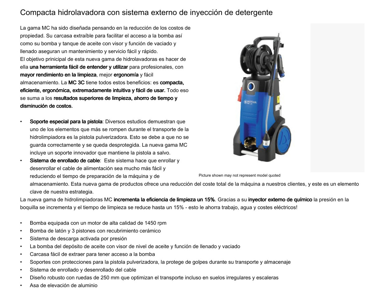 HIDROLAVADORA – > MARCA: NILFISK -> MODELO: MC3C-130/660 ; realizamos entrega en las ciudades de Lima, Arequipa, Cusco , Moquegua , Tacna , Ica , Chiclayo , Trujillo, Cajamarca, Piura, Tumbes, iquitos, Huancayo , Ayacucho , Pucallpa, Huanuco , Cerro de Pasco ; llevamos mas de 10 años comercializando NILFISK en Peru , somos especialistas importando hidrolavadora, equipo de limpieza industrial , hidrolimpiadora, lavadora a presionHidrolavadora NILFISK MC3C-130/660