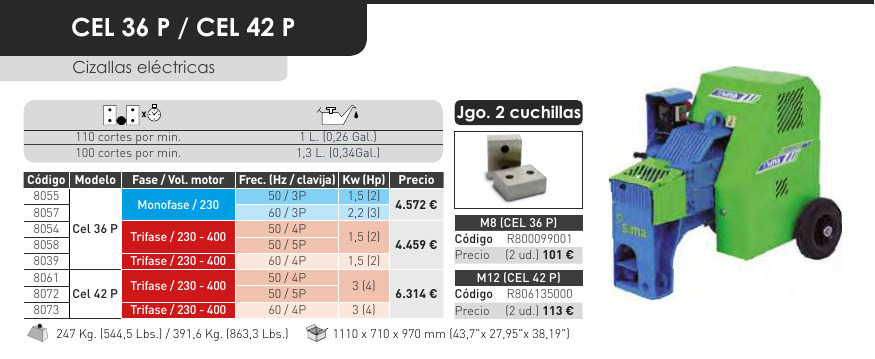 CIZALLA ELECTRICA – > MARCA: SIMA -> MODELO: CEL 42P ; realizamos entrega en las ciudades de Lima, Arequipa, Cusco , Moquegua , Tacna , Ica , Chiclayo , Trujillo, Cajamarca, Piura, Tumbes, iquitos, Huancayo , Ayacucho , Pucallpa, Huanuco , Cerro de Pasco ; llevamos mas de 10 años comercializando SIMA en Peru , somos especialistas importando cizalla electrica, maquinaria para construccion , cizalla, cizalla de estribos Cortadora de Hierro Cizalla eléctrica SIMA CEL 42P