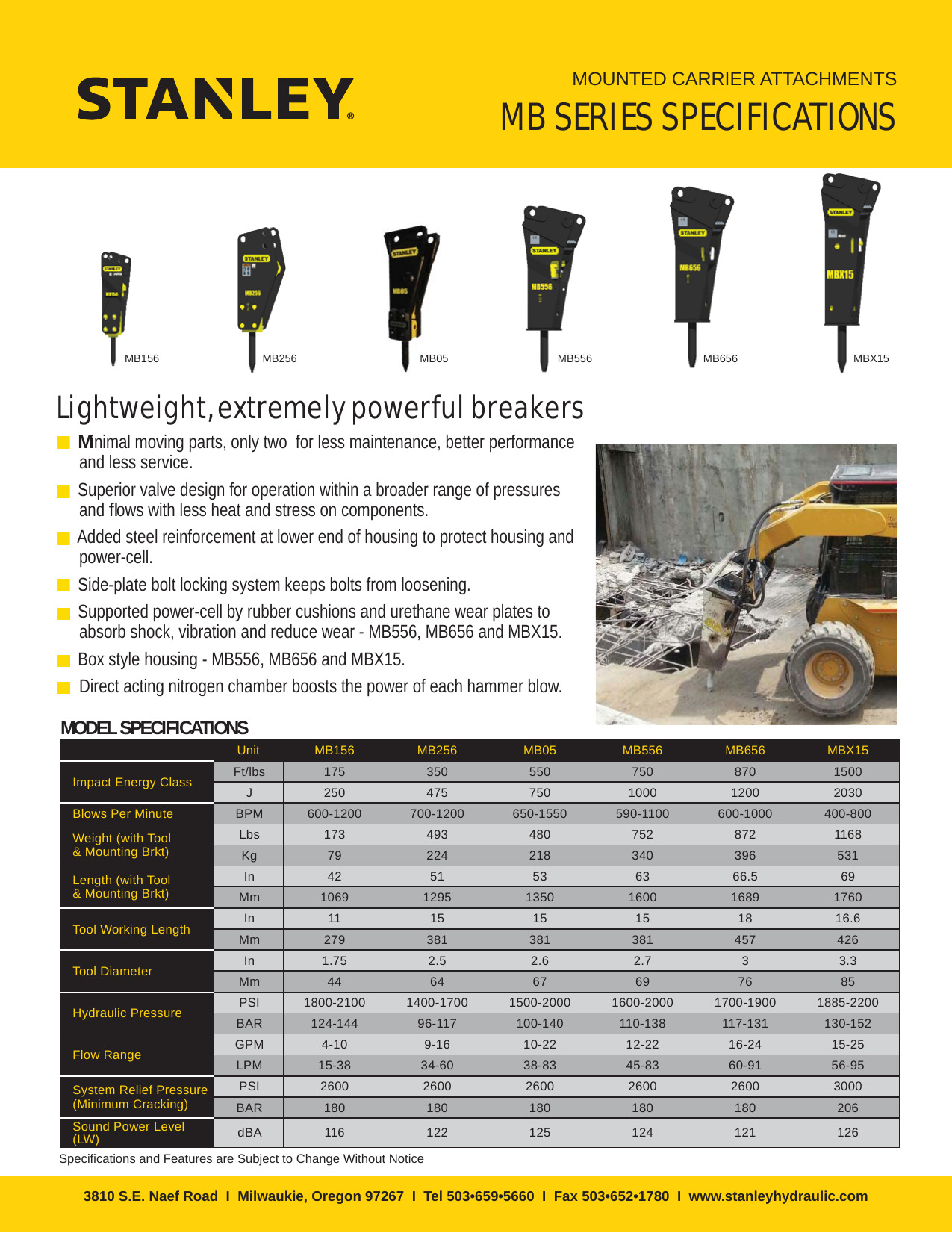 Los Martillos montado Stanley han sido diseñados y construidos para llevara a cabo las tareas mas demandantes en el sitio de trabajo Usted cuenta con una gran fuerza de impacto para romper materiales en una gran variedad de mercados y aplicaciones Los modelos de Montados Stanley estan disponibles para toda la clase de portadores