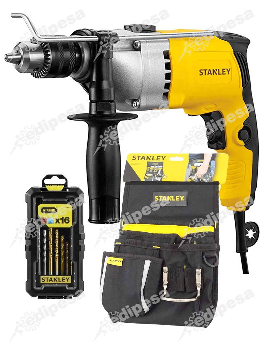 TALADRO PERCUTOR – > MARCA: STANLEY -> MODELO: STDH8013-B2 ; realizamos entrega en las ciudades de Lima, Arequipa, Cusco , Moquegua , Tacna , Ica , Chiclayo , Trujillo, Cajamarca, Piura, Tumbes, iquitos, Huancayo , Ayacucho , Pucallpa, Huanuco , Cerro de Pasco ; llevamos mas de 10 años comercializando STANLEY en Peru , somos especialistas importando taladro percutor, herramientas electricas , taladros, rotomartilloTaladro Percutor + Set Brocas + Cinturón Portaherramientas STANLEY STDH8013-B2