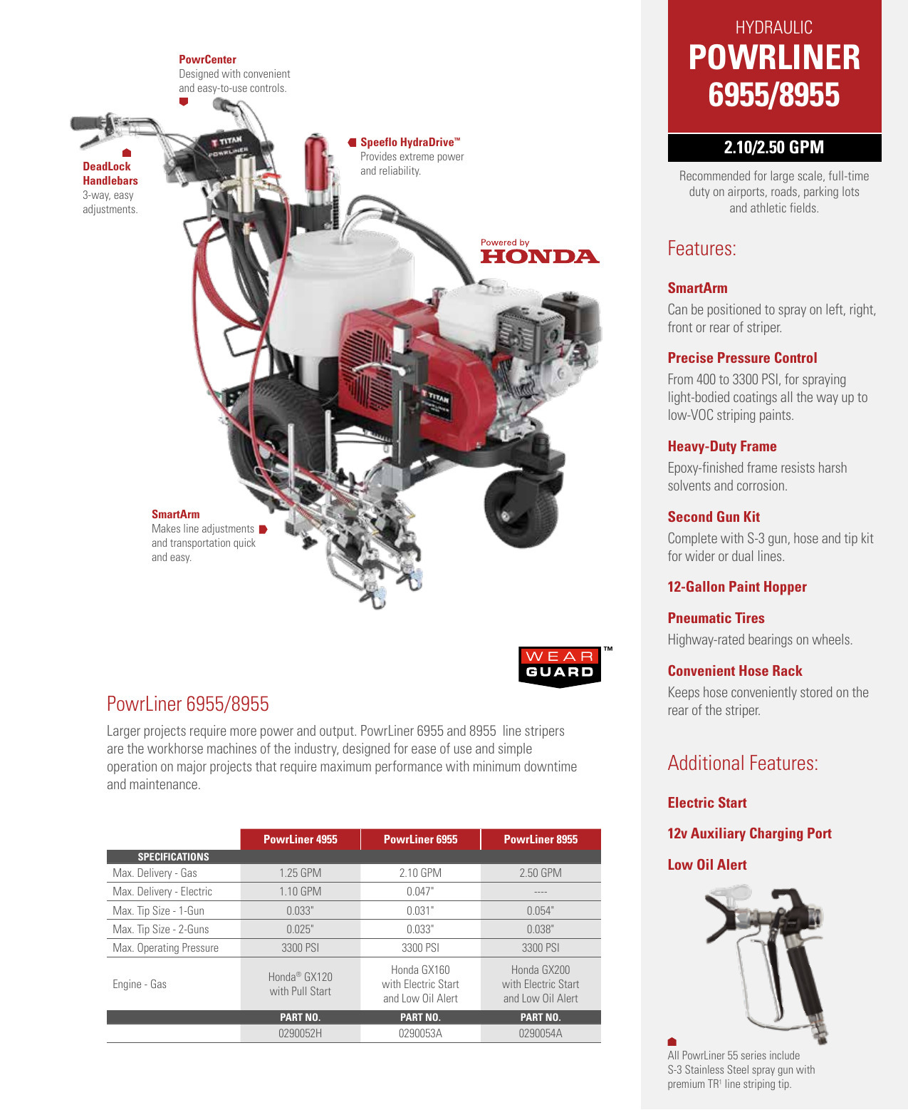 Los proyectos más grandes requieren más potencia y rendimiento. Los trazadores de líneas PowrLiner ™ 6955 son las máquinas de caballos de batalla de la industria, diseñados para facilitar el uso y la operación simple en proyectos importantes que requieren el máximo rendimiento con el mínimo tiempo de inactividad y mantenimiento. Recomendado para trabajos a gran escala a tiempo completo en aeropuertos, carreteras, estacionamientos y campos deportivos.
